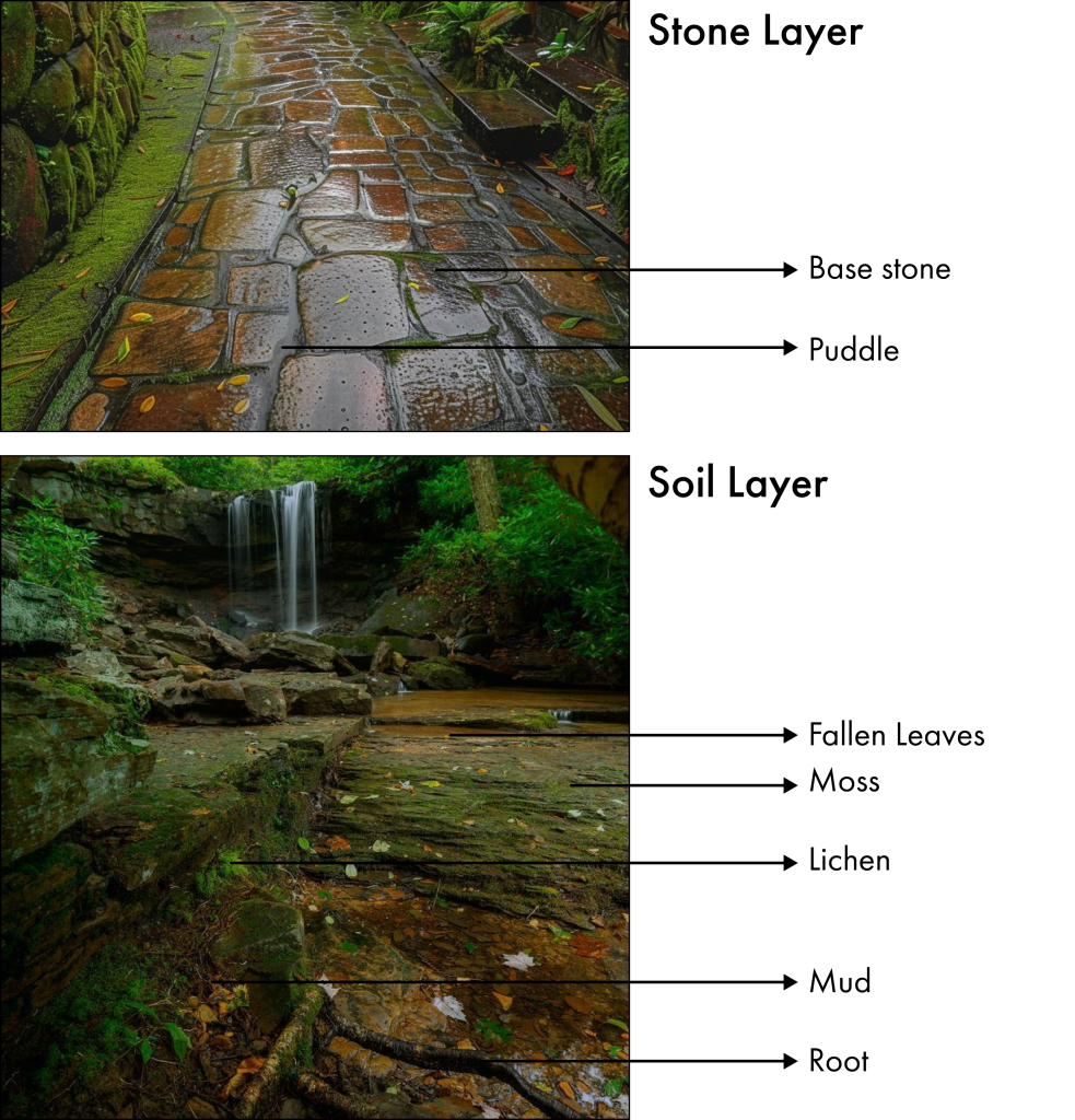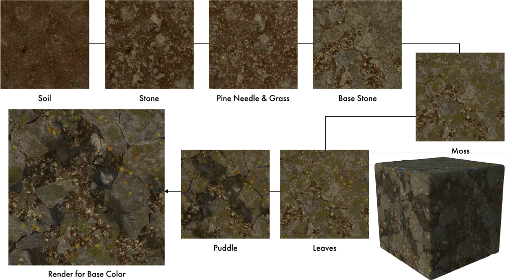 Based on the challenges and insights gained during the project, I aimed to explore procedural methods to aid development and improve efficiency. In this project, I utilized Substance Designer to create materials, which were then applied to the scene for rendering.