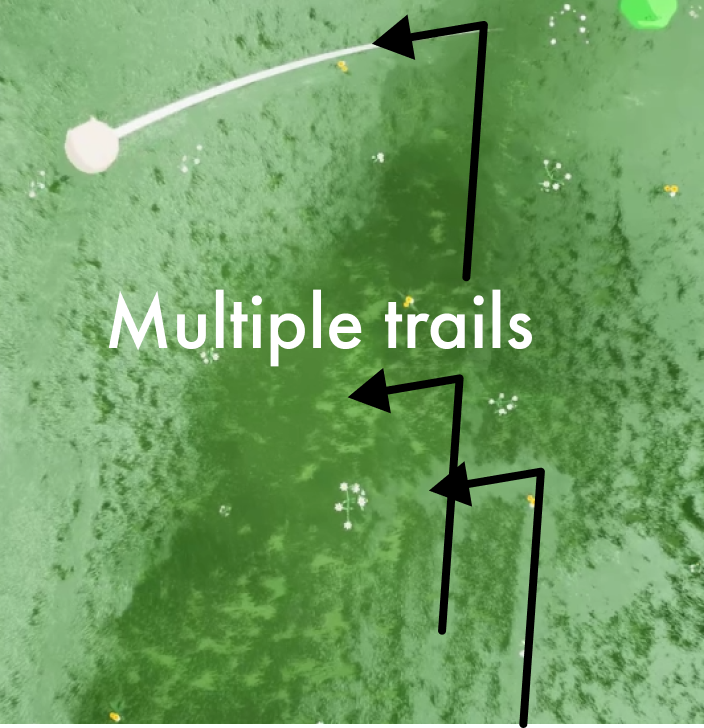 Problem 2: Anomaly with the trail persists even after shortening the duration. Multiple trails appear, and the pattern affects the grass.