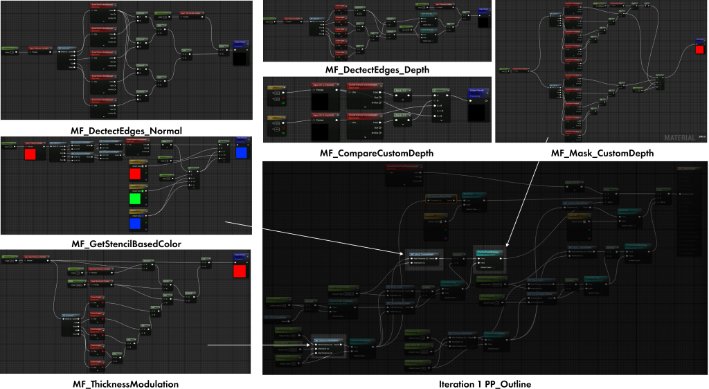 Approach: By combining Screen Position, Custom Depth, UV adjustments, and Edge Detection, this method dynamically renders object outlines.