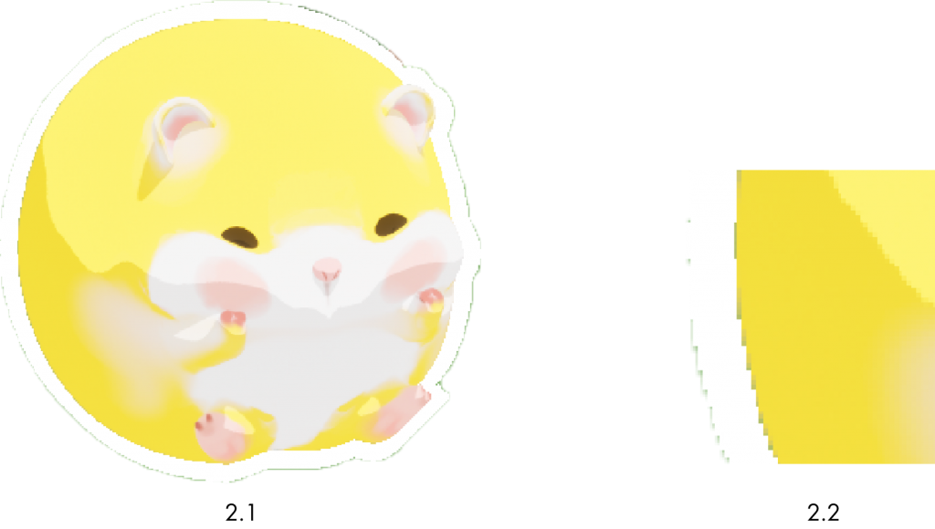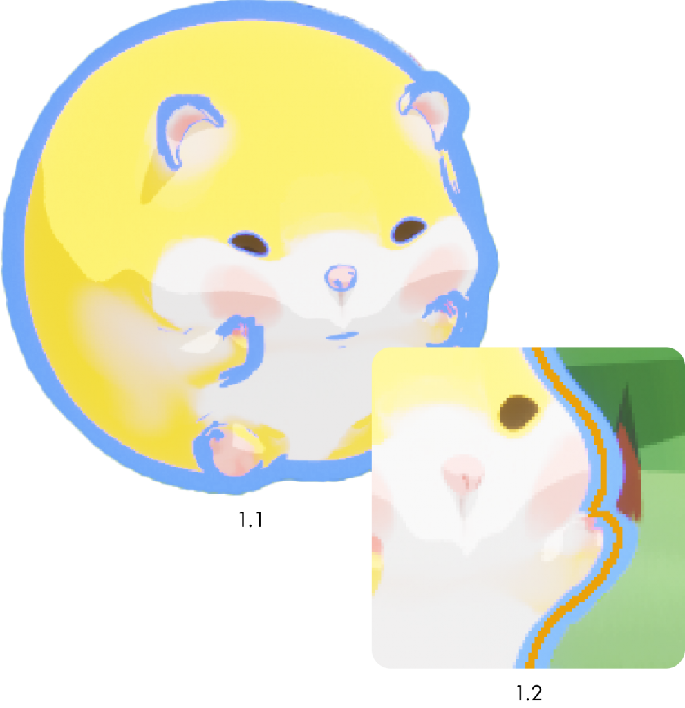 Problem: In testing, this outline method causes flickering, noticeable jagged edges, and separation from the object, especially during pinball movement (2.1 & 2.2).