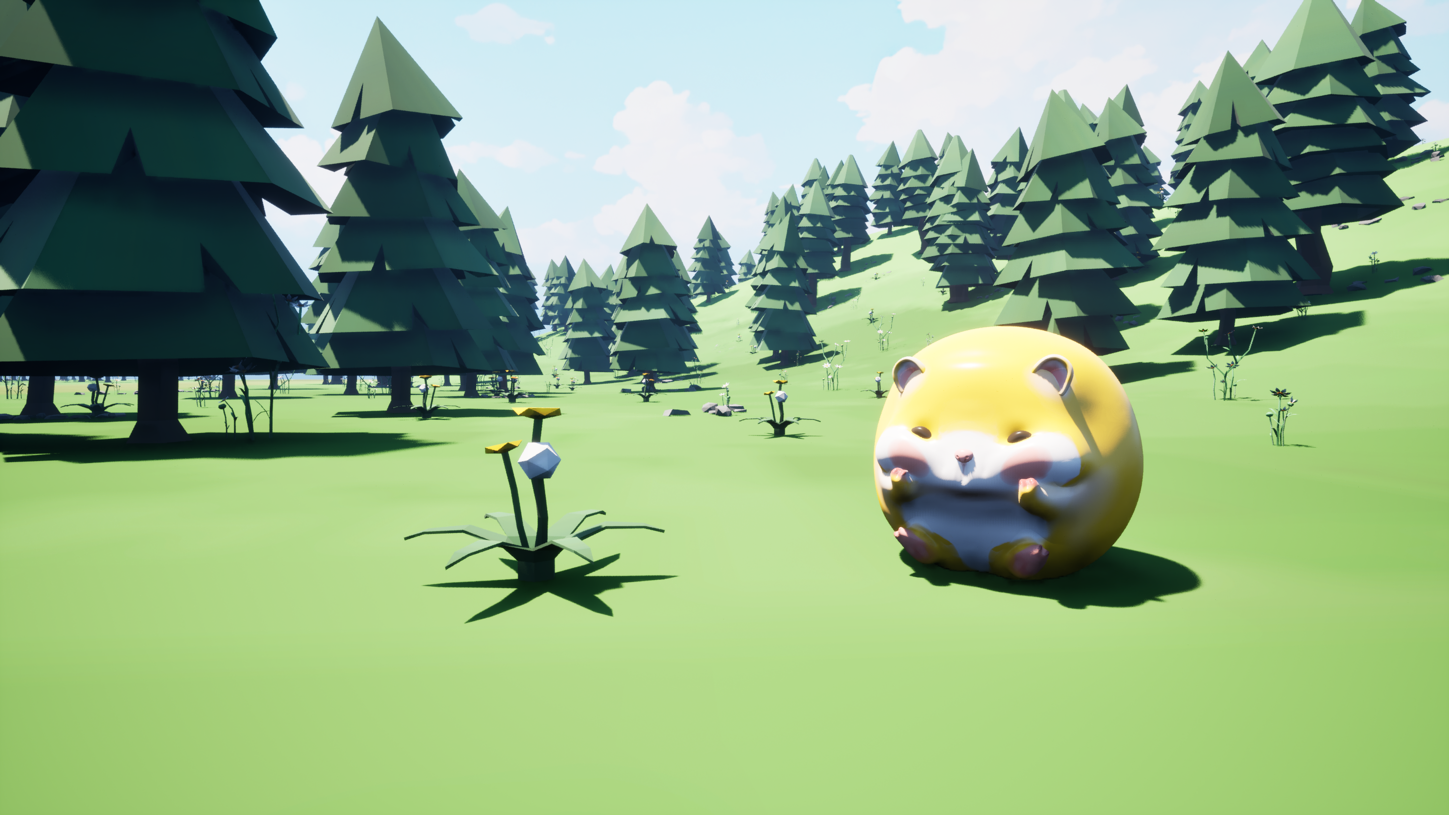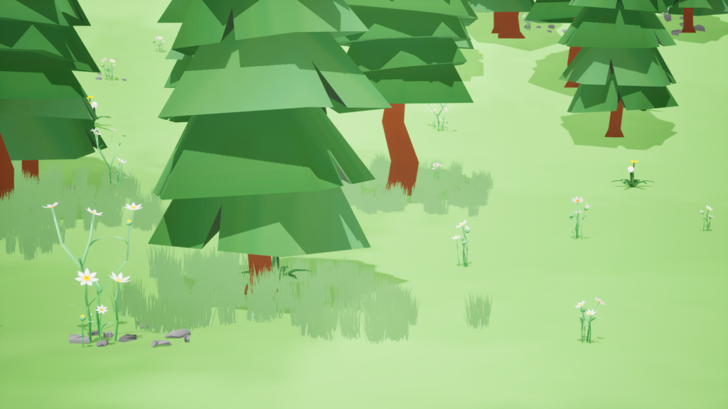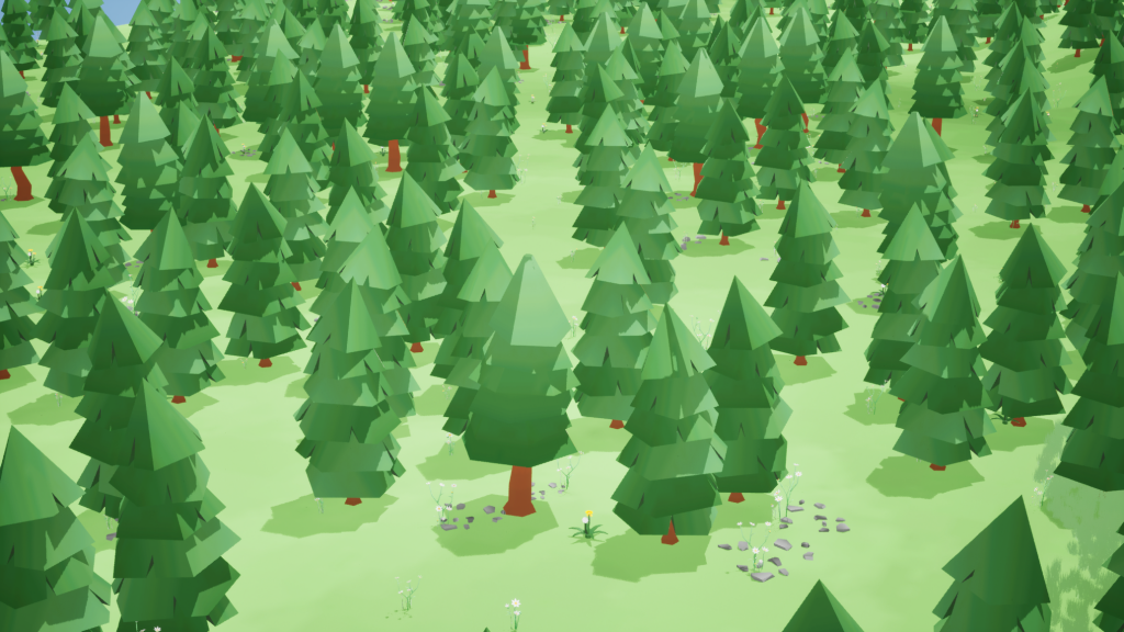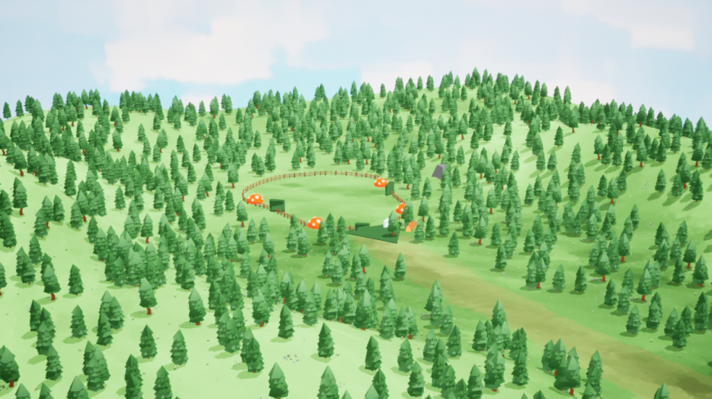 Our scene design focuses on a cartoon style with low-poly models. The game is about small animals in a forest using their skills to defeat enemies, so the main scene is set in a forest.